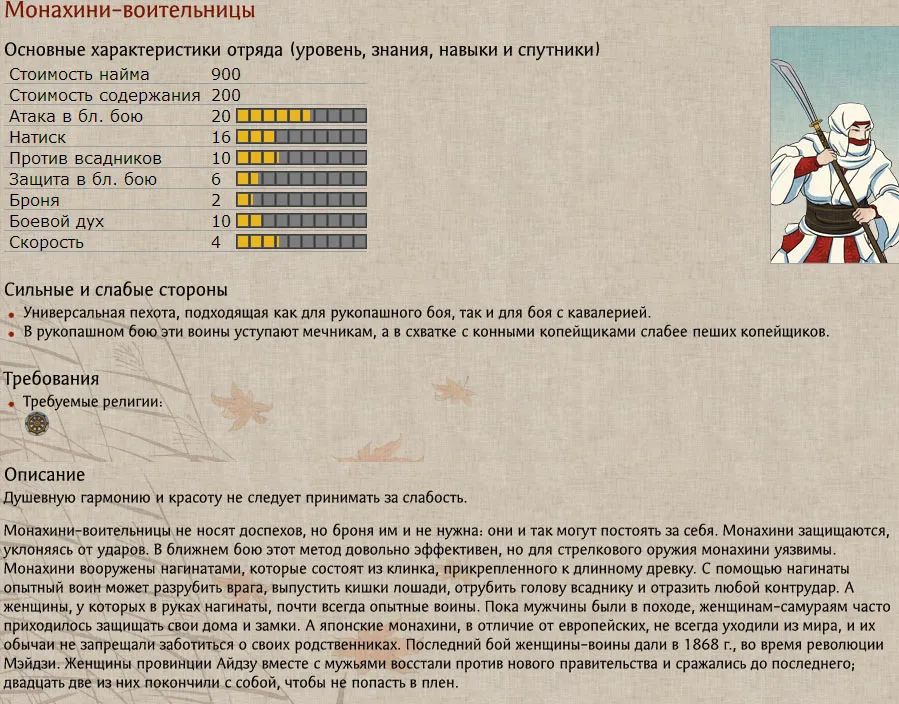- 1. Юнит Монахини-воительницы - может быть обучен любым домом, кроме Икко Икки.