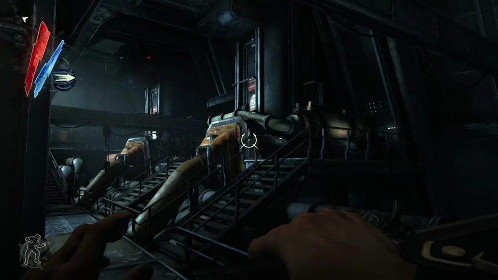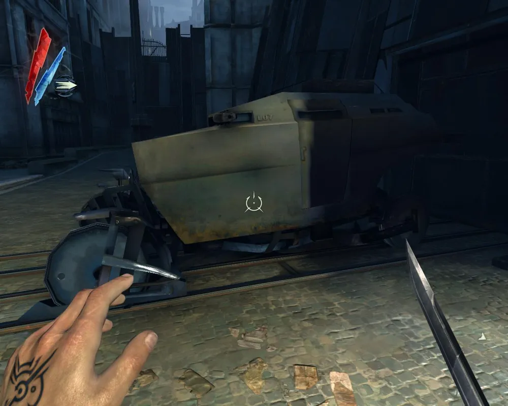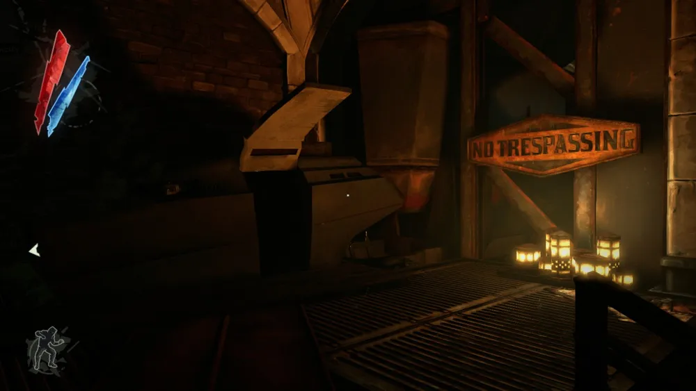 3) Помочь рабочему: на Складе Корво наблюдает картину – возле опрокинутой бочки с лужей вытекшей ворвани стражник орет на нерасторопного рабочего. Представитель закона упивается своим могуществом, его речь набирает обороты и эмоциональность, в то время как рабочий испуганно отступает от агрессивного мужлана. Накрутив себя в достаточной мере, стражник выхватывает меч и готовится зарубить рабочего. Корво может вмешаться и спасти бедолагу, взамен последний покажет вход в неиспользуемые ныне трубы для подачи ворвани на Электростанцию. По ним легко перебираться между зонами, не привлекая лишнего внимания.
