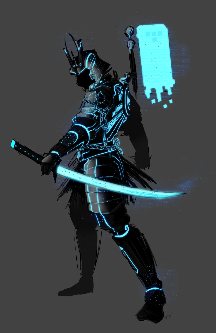 С тех пор мы построили новое общество — общество воинов-самураев и общество борцов за свободу. Обе стороны привлекали силы всеми возможными способами. Теперь мне точно известно, как глупо быть фанатично преданным своему пути и верить в идеалы, когда вопрос всего лишь в цене и борьбе за влияние между кланами, группировками и остатками цивилизованных стран. Я отключил свою лазерную катану и, как только лезвие прекратило светится, совершил ритуальное действие, положив катану на землю в знак того, что не хочу войны. Ведь мир и мирная жизнь в этих краях невозможна. Но мой враг был непреклонен. Я сказал, что нет никакого пути света в этой тьме войны, и после этих слов я почувствовал лезвие в своём сердце. Мир побледнел и стал чёрно-белым с тех пор. Эта боль для меня теперь вечна, пока я в этом мире-чистилище. Я уже привык к этой боли-скорби в своём сердце за свой мир и свой ложный путь. За то, что при жизни я понимал ложь своего пути и убивал в себе — живое, стараясь быть настоящим воином, вернее, машиной для бессмысленных убийств. Боль от лезвия в моём сердце — символ страданий, которые я принёс в сотни мест, пока был наёмником на земле. Я сожалел о той смерти, что сею, но ведь это был мой путь.