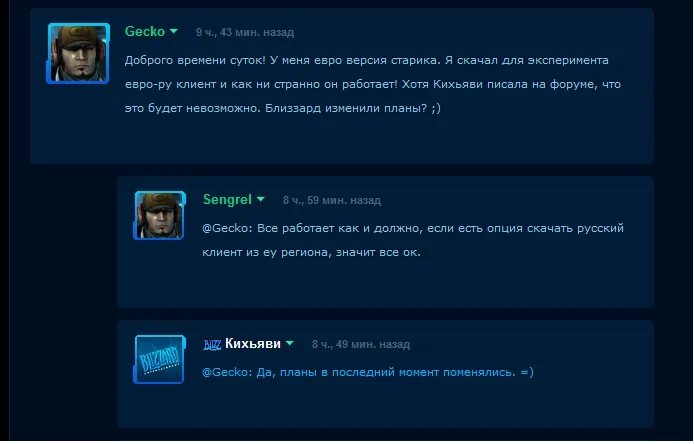 На сколько я понимаю еще недавно Кихьяви заявляла что игра с EU версии на RU серверах представляется невозможной. Но постетив сейчас SC2 сообщество и новость про открытие RU серверов я наткнулся на это:
