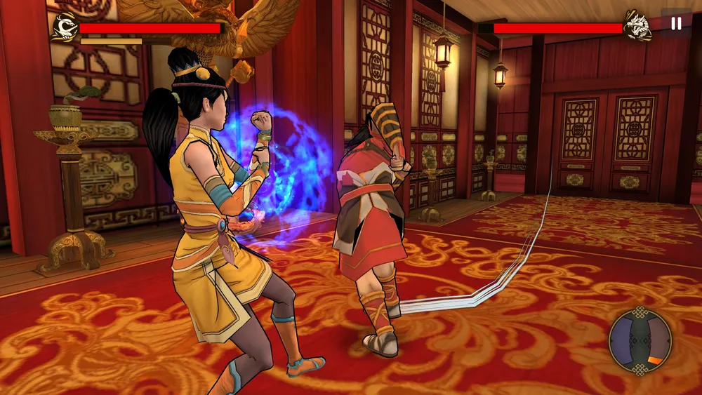 Для заполнения шкалы гун надо уворачиваться от атак противника: вместо того чтобы ставить блок нужно делать движение курсором мыши с зажатой левой клавишей от врага. И потом нас научат контратаковать, для чего движение мышью нужно делать от противника и обратно к нему. Получается такое "рисование" траектории уклонения. Так как это считается мягким кунг-фу (открытая ладонь), то аура даёт лечение Шуян. Может быть даже более полезно, чем аура от энергии ци, так как здоровье в ходе схватки иначе не пополнить.