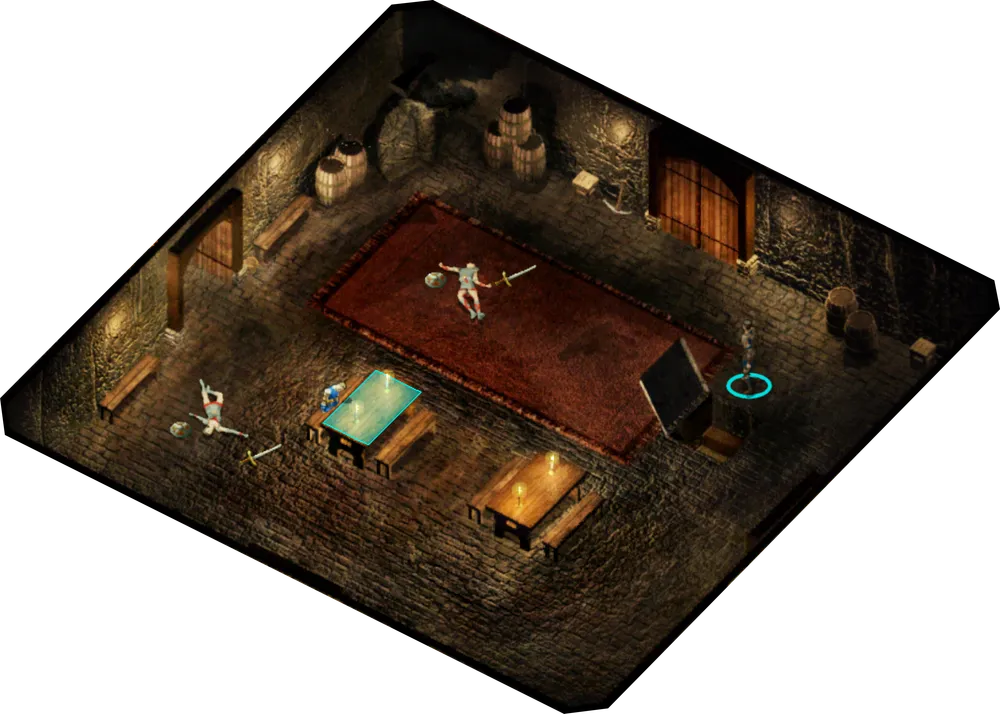 3. Побег. Внезапно, сон главного героя прервет вор. Он отопрет решетку и сообщит, что совет Четырех принял решение казнить обвиняемого на рассвете. Но, не все так плохо, у героя остался один преданный союзник — Имоен (см. прохождение, часть 2). Именно она отправила вора освободить своего друга детства и вывести его из города. Закончив диалог, направляйтесь в след за вором в центральный зал.