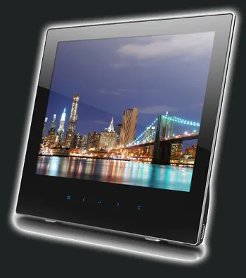 Digma PF-1005SL – сверхтонкая цифровая фоторамка с большим цветным TFT-диcплеем размером 10,4" и разрешением 800 x 600 точек. Управление осуществляется сенсорными кнопками, расположенными на фронтальной панели, а также с помощью беспроводного инфракрасного пульта, поставляемого в комплекте.