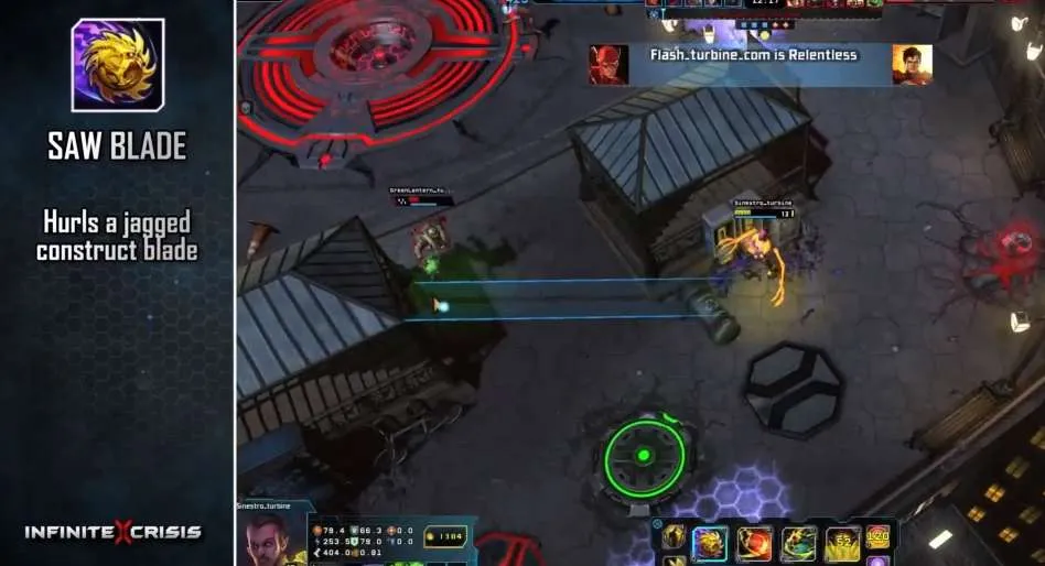 Синестро бросает конструкт в виде пилы, нанося силовой урон первому пораженному врагу. Если на цель наложено Желтое загрязнение, ей наносится дополнительный силовой урон, пропорциональный отсутствующему здоровью. При использовании против дронов и существ дополнительный урон не может превышать определенного значения.