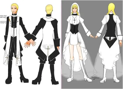 И наконец восьмое: Thallmann и его Kreuze (Опять-таки "Кресты"). Мужчина и женщина. Костюм как будто сошел к нам с монахов из Trinity Blood.