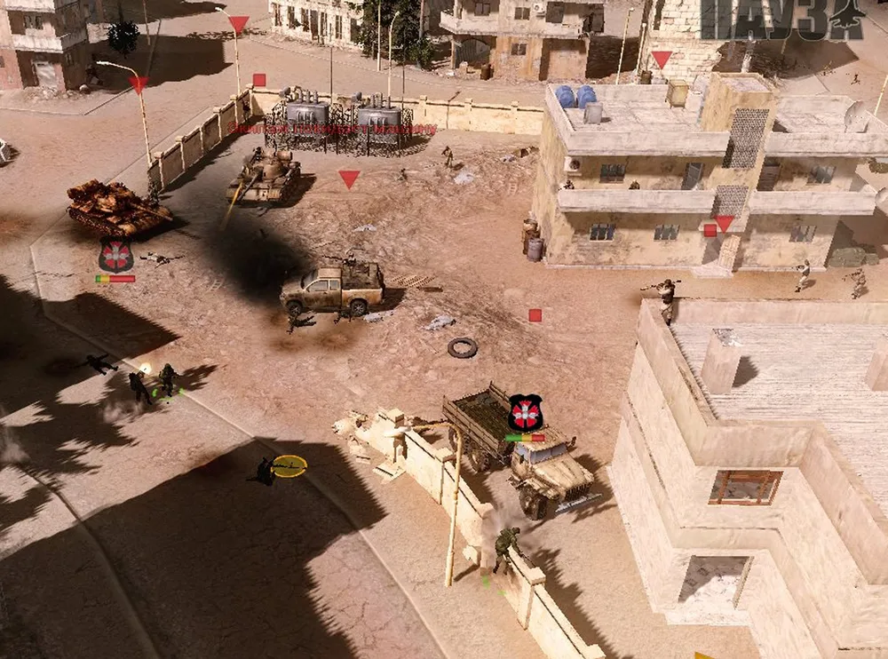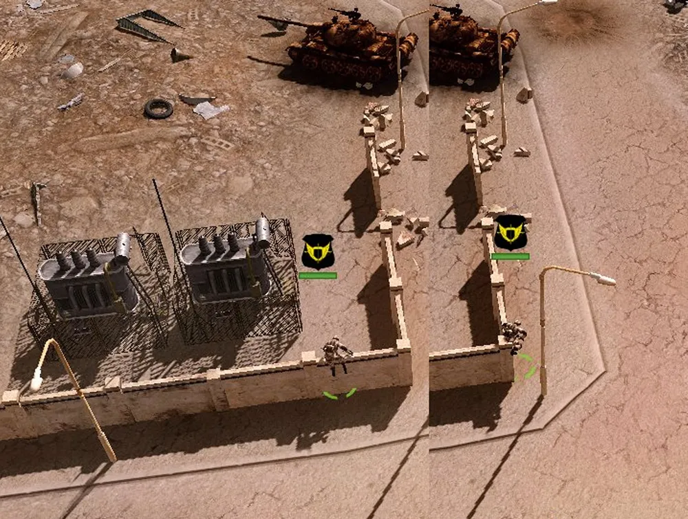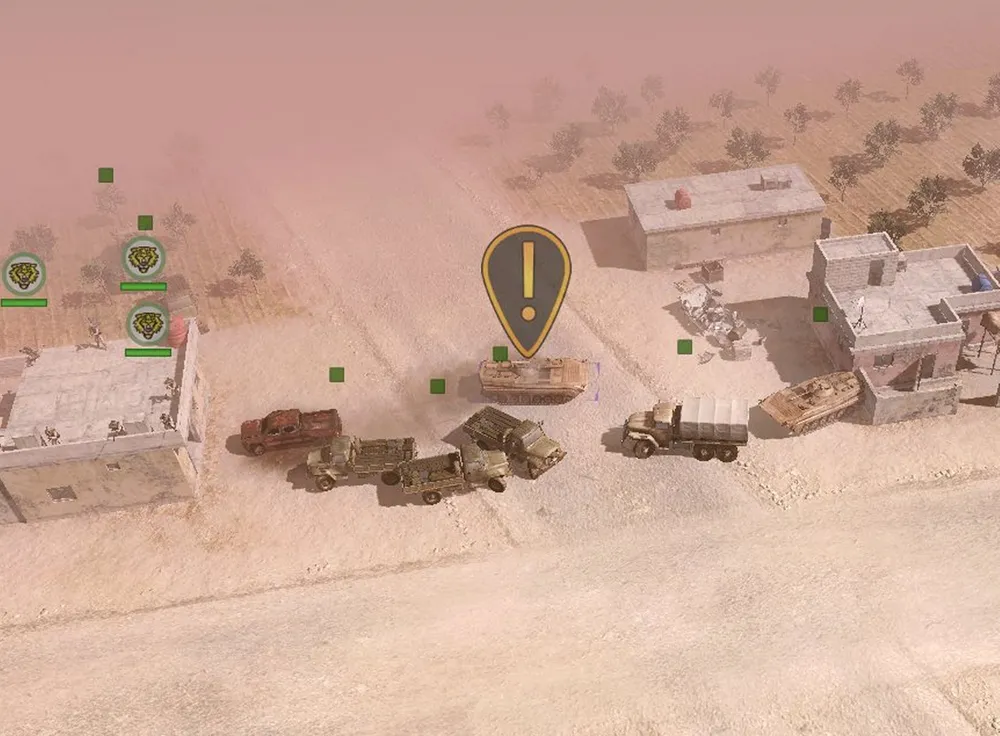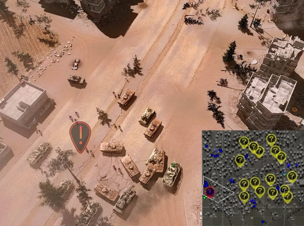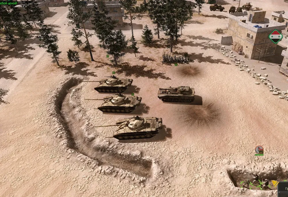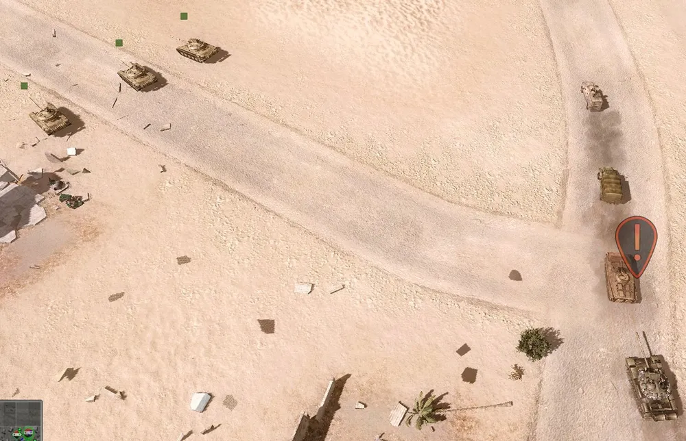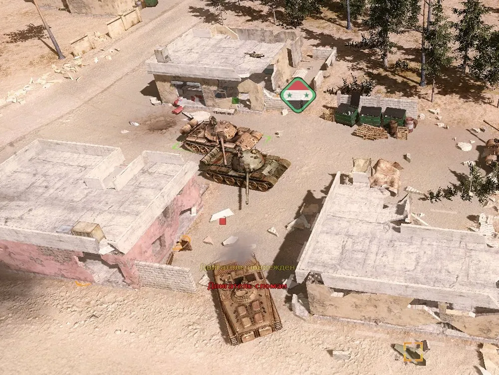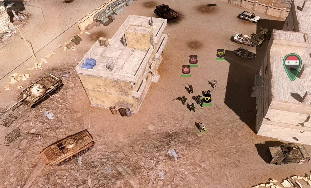 Конвой проведён, танки обеспечены боезапасом: предстоит захватить и удержать две точки в противоположных краях карты. Нижняя частично защищается минированием дорог, ведущих из-за края карты, верхняя — сносом домов, служащих пристанищем игил-овцам.