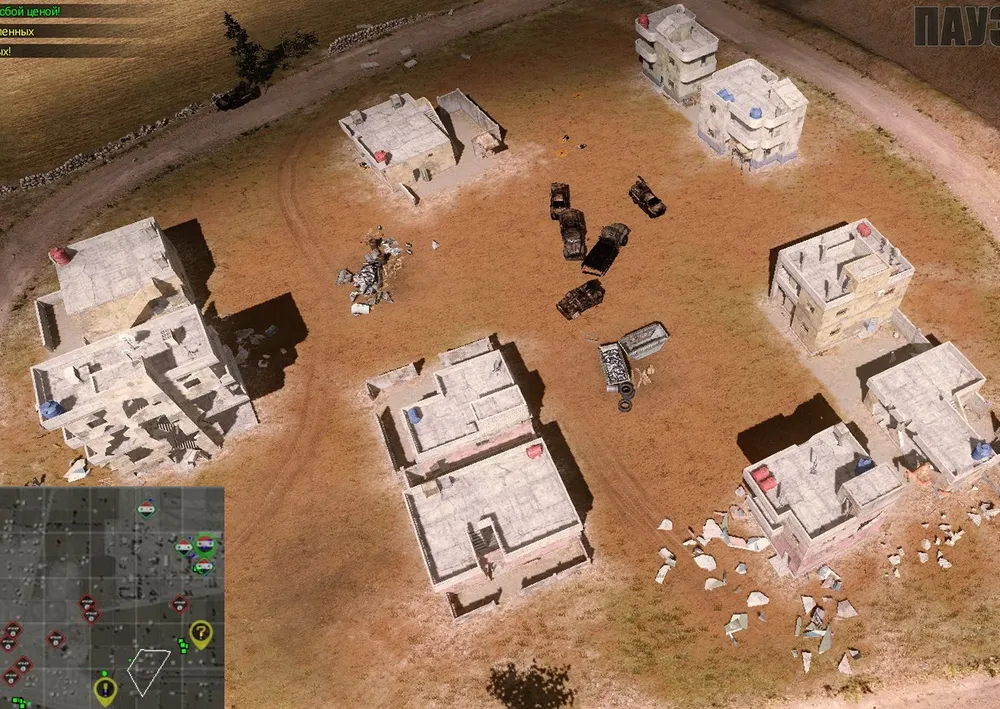 Как провести БМП и спасти заложников? Сохраните игру в отдельный слот и проверьте трассу медиков, затем загружайте её. Как только в вашем распоряжении появятся наводчики, прикажите авиации уничтожить группу домов слева от шоссе по направлению к правому нижнему углу карты (важно, чтобы НУРСы уничтожили миномётные расчёты во дворе одного из домов).