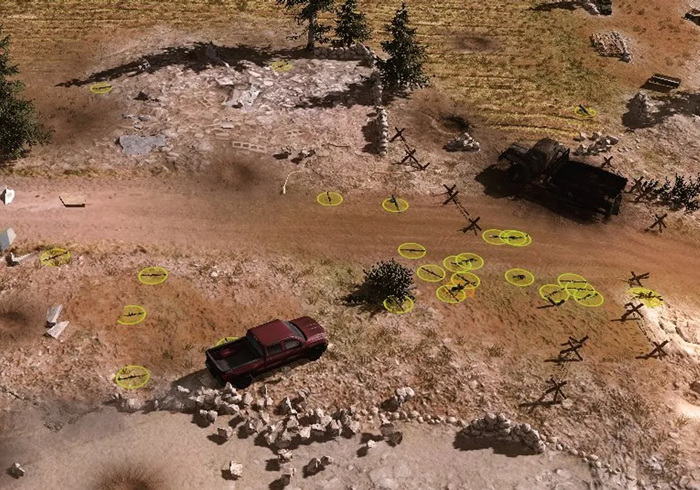 Как только вы освободите крайнюю точку, произойдёт два события: вам дадут подкрепление, а из-за края карты появится конвой и двинется к аэродрому, ни на что не обращая внимания. Поэтому заведите свои отряды вперёд и максимально зачистите окрестности дороги.