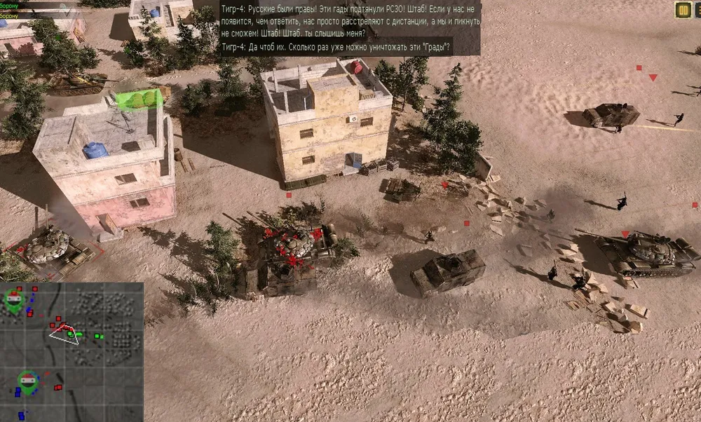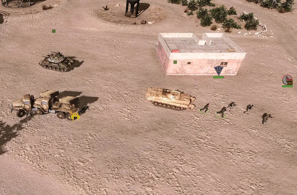 Танки выдвинулись вперёд, за ними – пара «Гвоздик» при поддержке трёх машин снабжения. И началось планомерное уничтожение зданий, занятых врагом: почти невидимый наводчик выдвигался вперёд (полезно заблокировать ему применение личного оружия) и наводил на игил-овец воздушные удары.