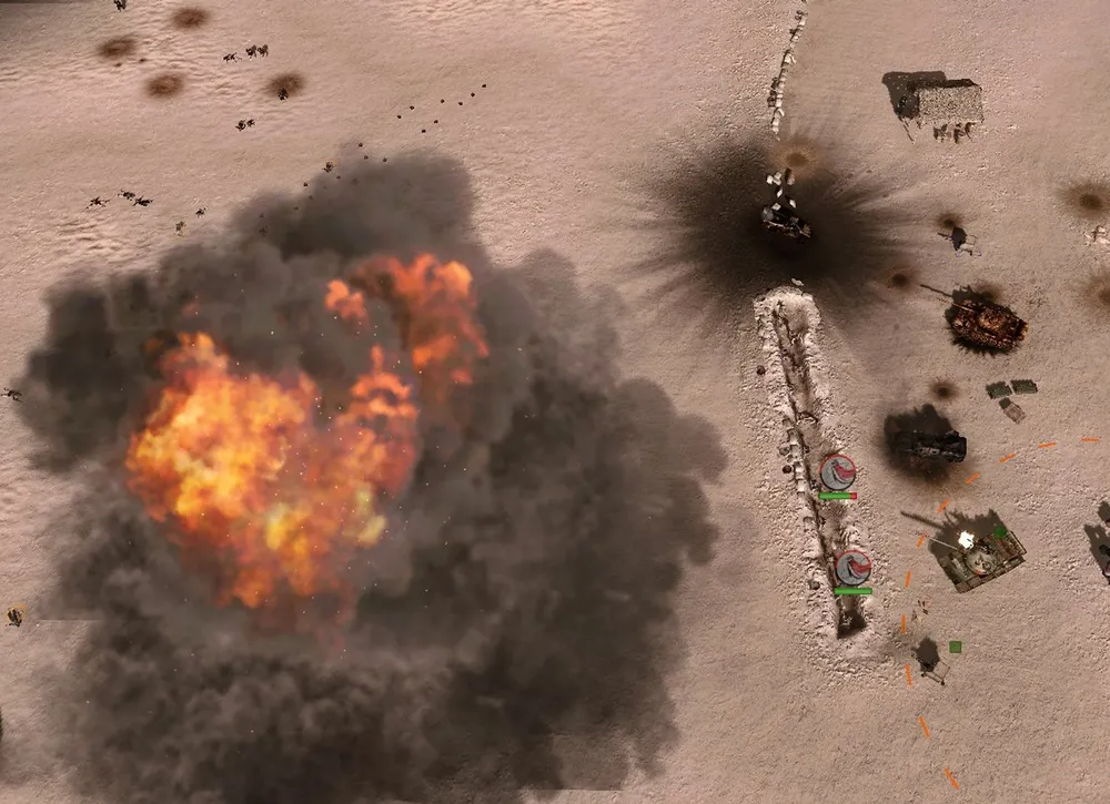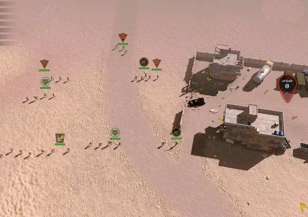 К слову, о балансе. ИИ постоянно «шпионит» за геймером. Стоит отвести танки с позиции, например, для дозаправки, как моментально начинается атака именно на неё. Чертыхнувшись, загрузил игру, быстро вернул танки – вражеская танковая атака пошла на другом краю карты, где позиции удерживает только пехота. Двинул танки вперёд, чтобы пересечь путь врагу и защитить пехоту – атакуют здание первой контрольной точки, где никто из врагов давно не появлялся, и где в обороне сидит два едва живых отряда ополчения (к слову, самые бесполезные отряды пехоты в игре: по той простой причине, что используют только лёгкое огнестрельное оружие да гранаты, а брать что-либо у поверженных врагов – отказываются). Вероятно, игил-овцы обзавелись массой спутников слежения и постоянно контролируют позиции правительственных войск…