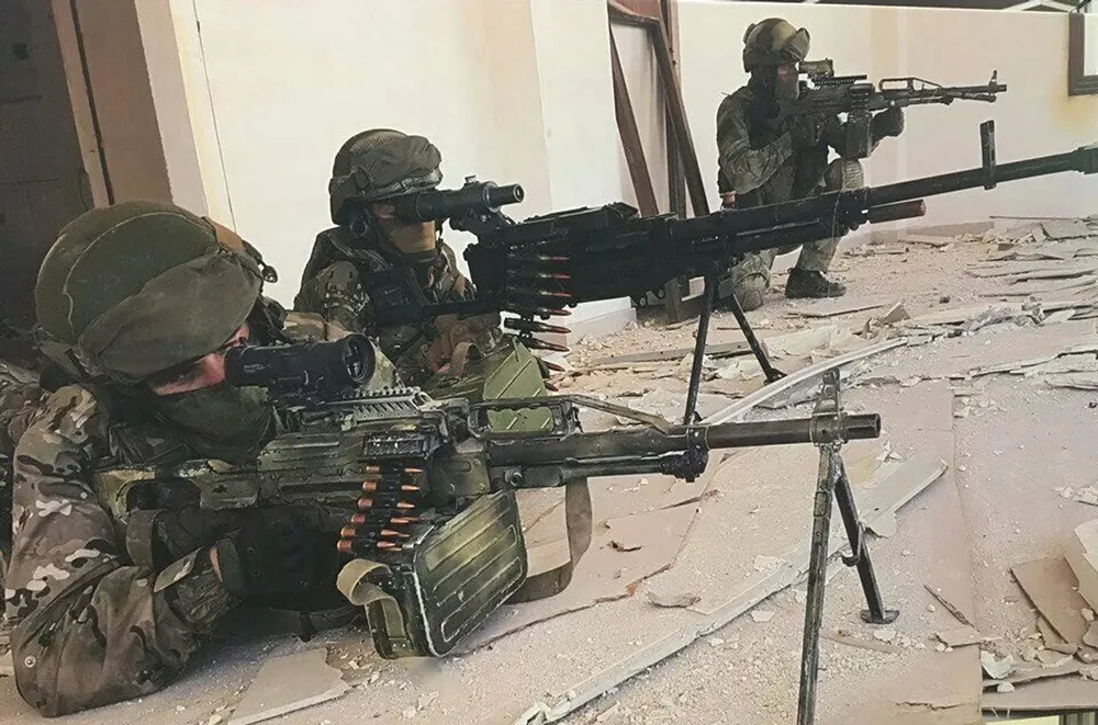 У прибывших десантников ВС РФ на вооружении современный гранатомёт, а в следующей миссии этого отряда не будет. Заставил их бойца поднять с земли самый простой гранатомёт, а освободившуюся чудо-машинку подобрал мой отряд; на трёх бойцов – сразу два гранатомёта! А вот попытка забрать крупнокалиберную винтовку у спецназа ВС РФ с треском провалилась: спецназовцы не расстаются со своим оружием!