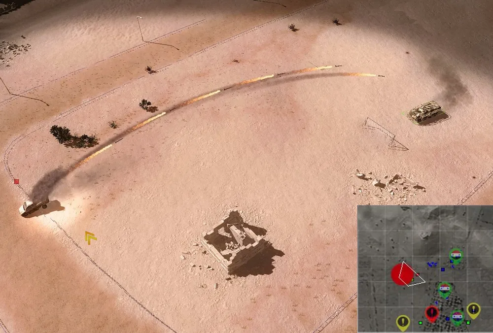 Дожидаемся прекращения атак, и одним танком отправляемся отыскивать «Грады». Как только они окажутся в поле зрения, запрещаем танку применение любого оружия, кроме пулемёта 7.62 мм. Если повезёт, игил-овцы покинут машины, танкисты их перебьют; а ваши пехотинцы захватят РСЗО.