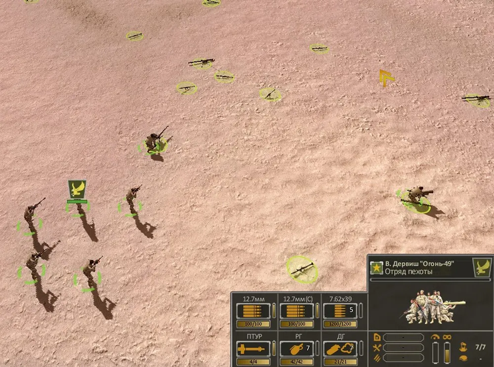 Второй секрет ведения боёв, которому я не уделял должного внимания во время предыдущего прохождения – замена оружия. Снайперы ополчения, подобравшие на поле боя крупнокалиберную винтовку, моментально становились грозными противниками. Штурмовой отряд и отряд пехоты подобрали ПТУР и крупнокалиберные пулемёты; второй отряд пехоты – пулемёт и снайперскую винтовку калибра 12.7; отряд ополченцев с РПГ дополнил своё вооружение ПТУР: ого! Огневая мощь отрядов тотчас возросла.