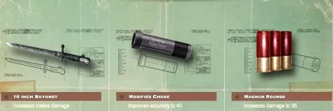 3-тье улучшение: к ружью приделывается штык-нож – увеличение урона в рукопашной схватке.