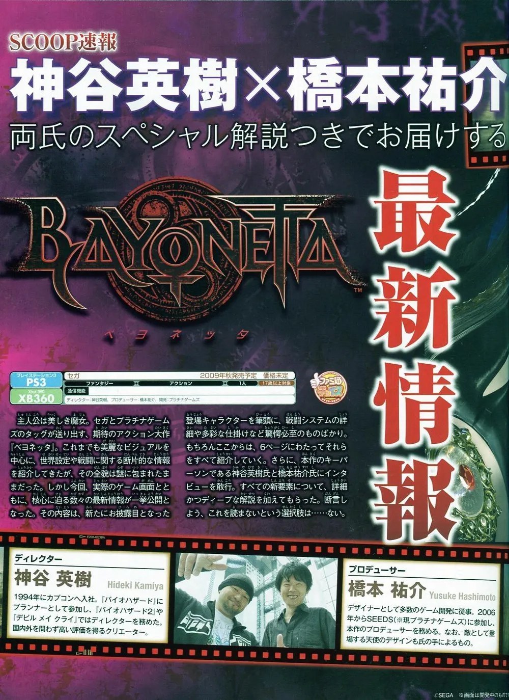Сайт GoOnl!ne опубликовал сканы статьи об ожидаемом экшне Bayonetta из последнего номера Famitsu.