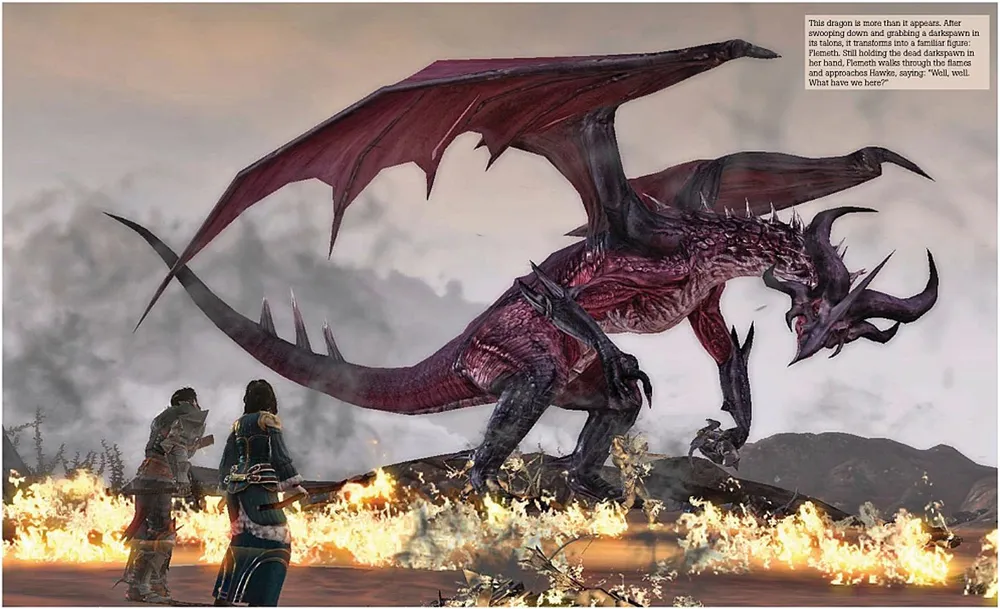 Game Informer рассказывает впечатления от демо-версии игры. В ее начале ведут беседу дворф гном по имени Варрик (Varric) и женщина-следователь из Церкви [очевидно, речь о Кассандре]. Мы узнаем из сценки, что мир на пороге войны. Следователь же считает, что понимание действий Хоука поможет объяснить и предотвратить грядущий конфликт. Она хочет узнать, как Хоук сбежал из Лотеринга (Lothering), и Варрик неохотно рассказывает об этом. По крайней мере, он рассказывает следователю ту историю, которую хочет, чтобы та услышала. Сценка заканчивается и мы переносимся в Лотеринг и переходим к Хоуку.