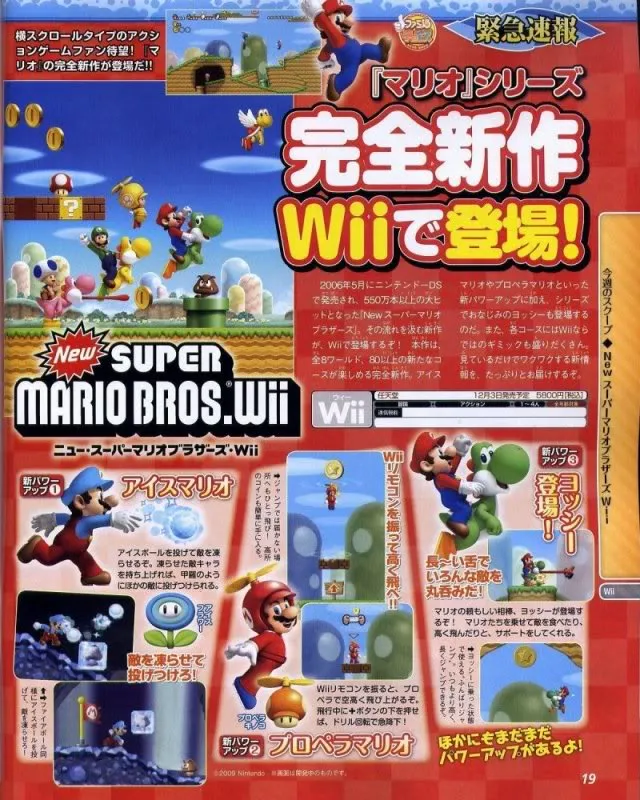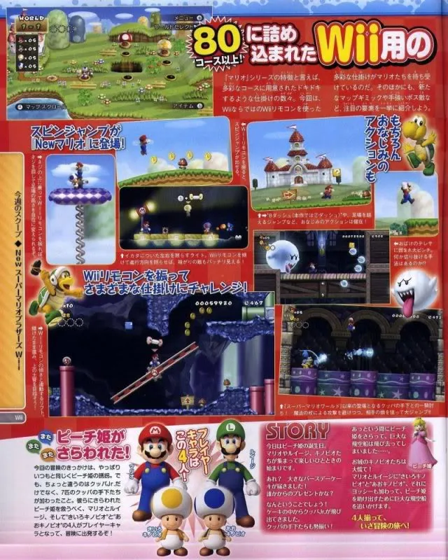 В сети появились сканы журнала, показывающие новые особенности (вещи и уровни) игры для Wii - New Super Mario Bros. Wii.