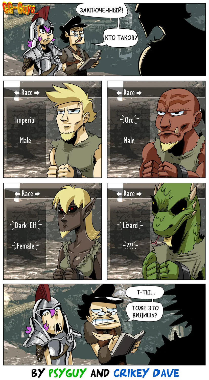 Такое громкое событие, как выход новых Свитков не оставило равнодушным многих творческих личностей в интернете. Разные известные художники составили свои комиксы о новой игре.