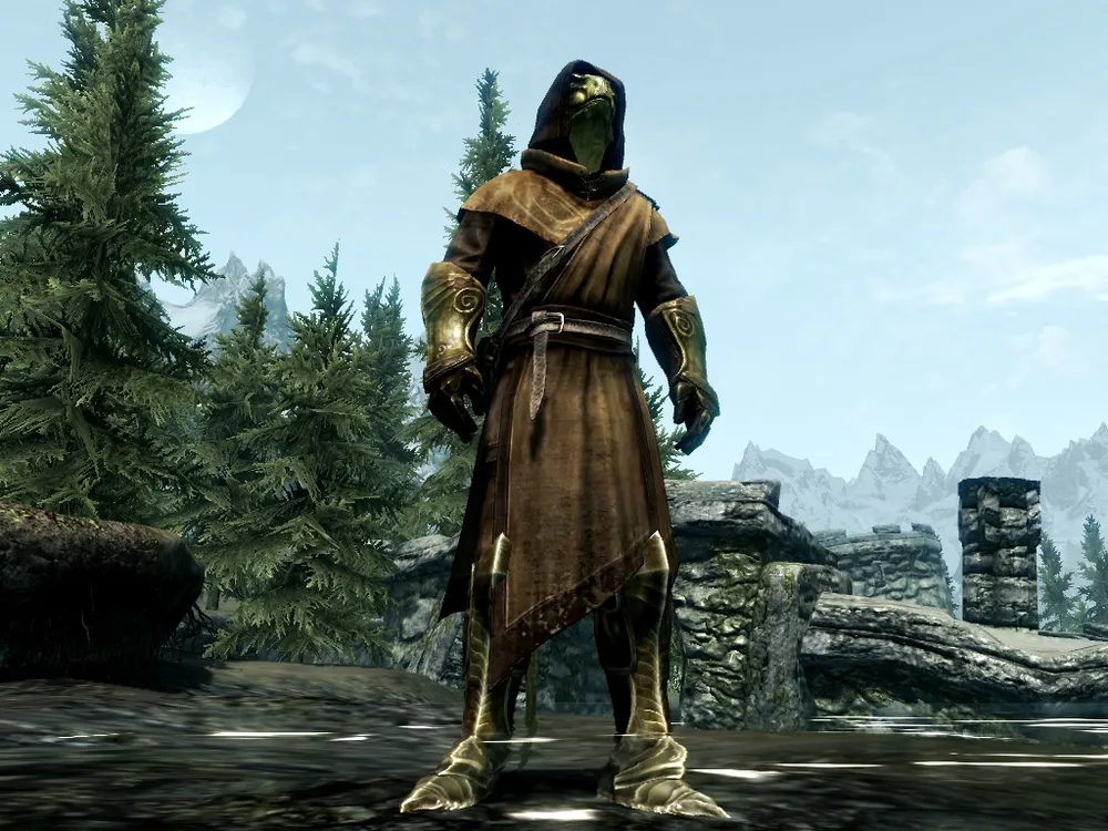Изначально Квин разрабатывался для ФРПГ, но позже она загнулась, и персонаж отправился путешествовать по чужим мирам - так что в Скайриме он несколько не в своей тарелке. Но он будет стараться!