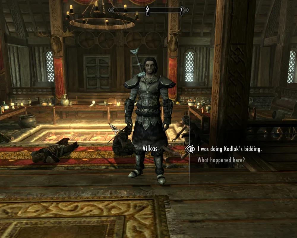 После боя Халк обратился к первому попавшемуся мужчине в зале, с целью узнать - кто тут главный? Хогану посоветовали обратиться к Кодлаку Белогривому, в.и.о. главы Соратников. Как оказалось, полноценного босса у этой гильдии нет, есть только должность старейшины, «предвестника», которую и занимает этот самый Кодлак. По некоторым намёкам вы уже могли догадаться, кто же в итоге станет новым предвестником, НО НЕ БУДУ СПОЙЛЕРИТЬ.