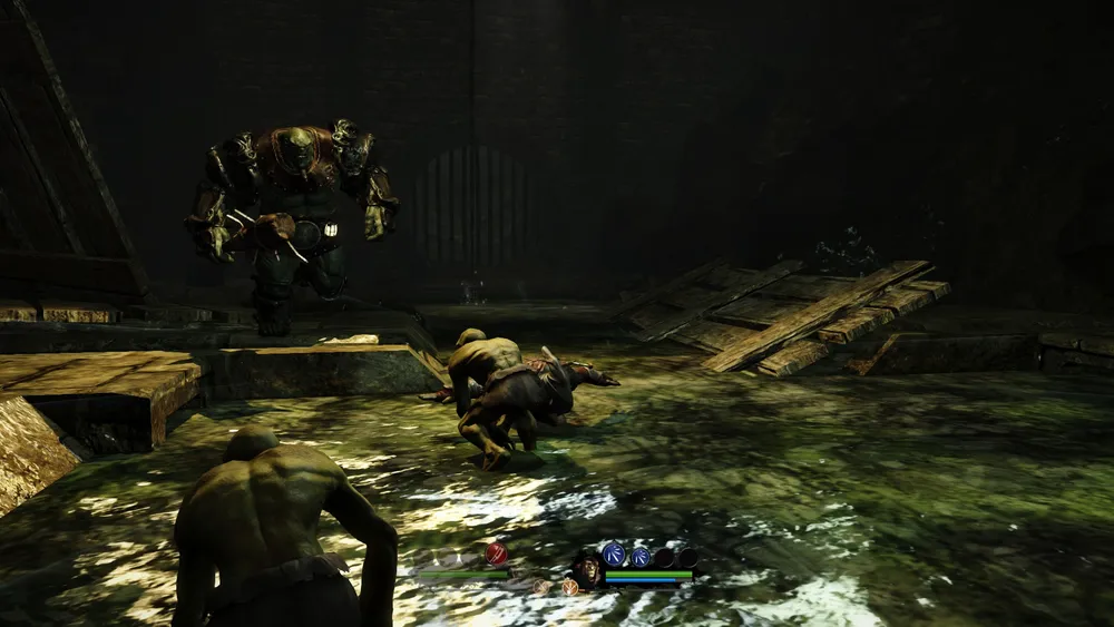В режиме невидимости гоблин скрытно подбирается врагу, после чего отточенным движением перерезает тому глотку. Если Стикса не замечают, он может вычистить от противников всю комнату или локацию, но это случается крайне редко. Даже с прокаченным навыком скрытности доморощенного ассасина замечают многие, не говоря уж и собачках. Гав-гав-гав, и приходится бежать к оставленному где-нибудь за ближайшим углом Аркаилу (орк не бежит за напарником, когда тот находится в режиме невидимости). Ну а там, естественно, раззудись плечо и размахнись рука, Аркаил в бешенстве ломает позвоночники и трясет врагами как куклами. Но на этом полезные качества гоблина не заканчиваются, так как он, как и уродливая псина Вестфорда из Game of Thrones, может влезать в различные щели и узкие проходы, куда Аркаил просто-напросто не смог бы пробраться. Кроме того на поздних этапах игры гоблин может обзавестись дополнительным умением, когда игрока ставят перед выбором, что именно следует изучить: теневую магию или новые приемчики из арсенала скрытного убийцы. Аналогичную манипуляцию придется проделать и с орком, но у зеленокожего гиганта проявятся совершенно другие способности: Аркаил либо продолжит путь безумного берсерка, либо научится контролировать свой неуемный гнев.