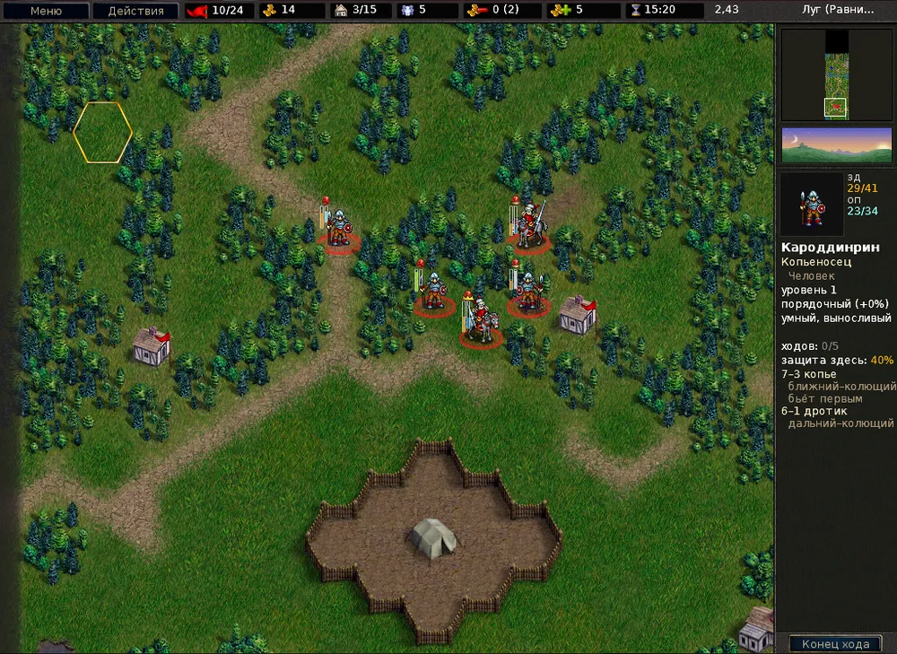Итак, мы начинаем игру Арвитом (рыцарь, 2 уровень) и десятком солдат. Особенно радует то, что основные атаки наших бравых вояк - колющие, на которые нежити глубоко начхать. Тупой атакой в лоб ничего не свершить.