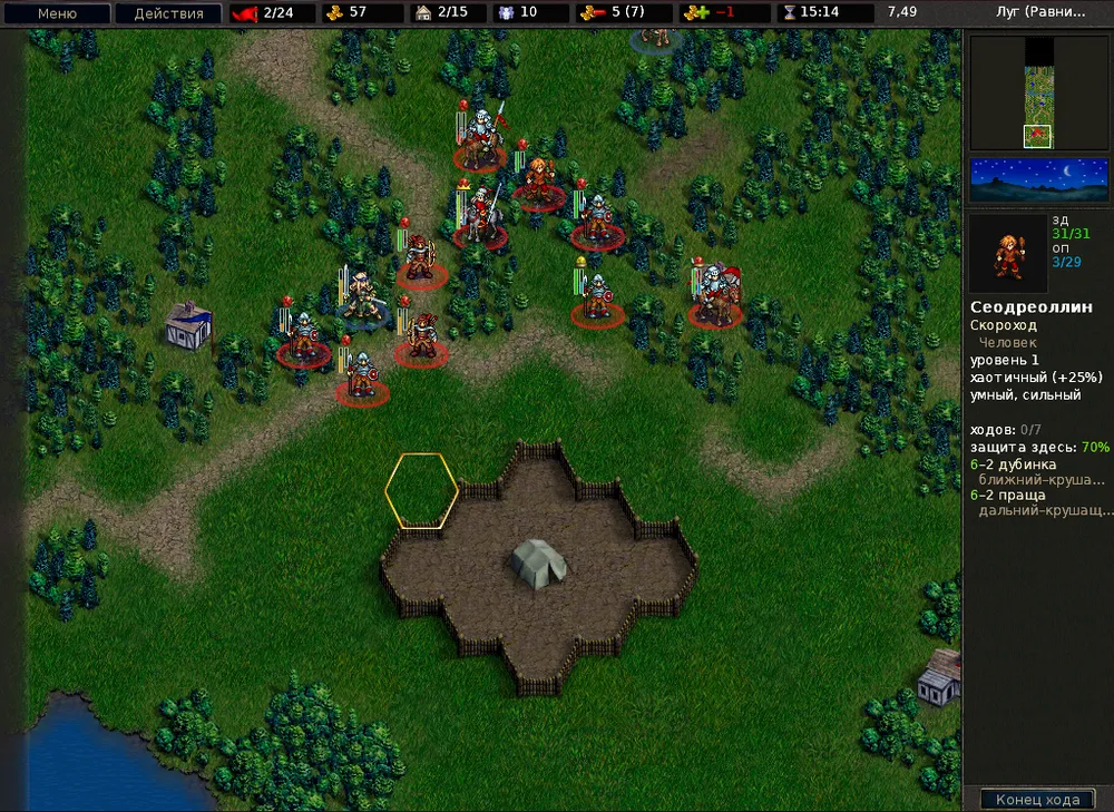 Пока у противника есть скриптовые бойцы, ни в коем случае не надо лезть в лес. Один герой(эльф) может доставить кучу неприятностей.