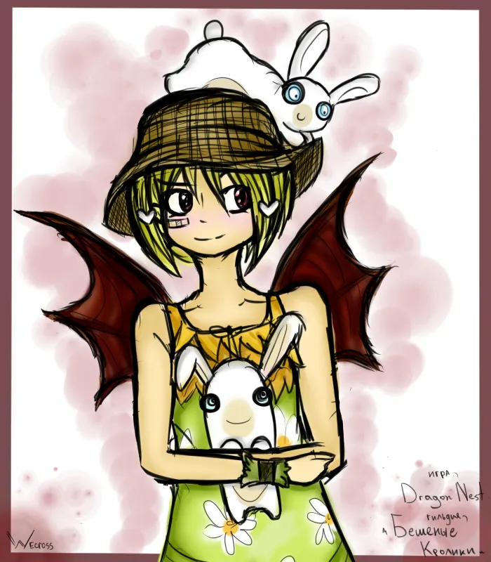 На рисунке изображен глава гильдии «БешеныеКролики», милый инженер со своими кроликами =)