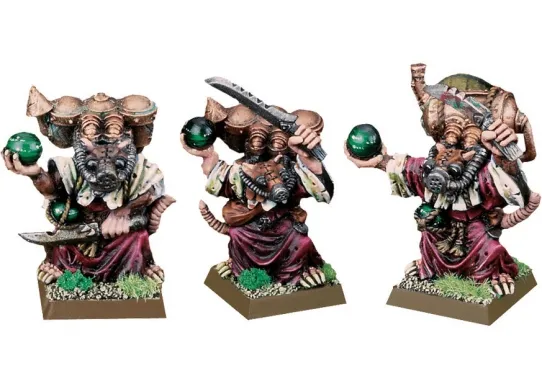 Серые Провидцы – это живые пророки Рогатой Крысы, несущие её слово обычным Скейвенам. Советом и угрозой они направляют кланы по пути Рогатой Крысы – в их собственной интерпретации этого пути. Кроме того, они действуют как посредники, распространяя декреты Совета Тринадцати. Противоречащий Провидцам объявляется еретиком, восставшим против воли божества. Это часто используется, если клан желает сокрушить соперника, опираясь на поддержку Провидцев и Совета Тринадцати. Таким образом, Провидцы имеют значительный политический вес. Это вызывает недовольство многих важных Скейвенов, и глуп тот Провидец, который не охраняет свою спину.
