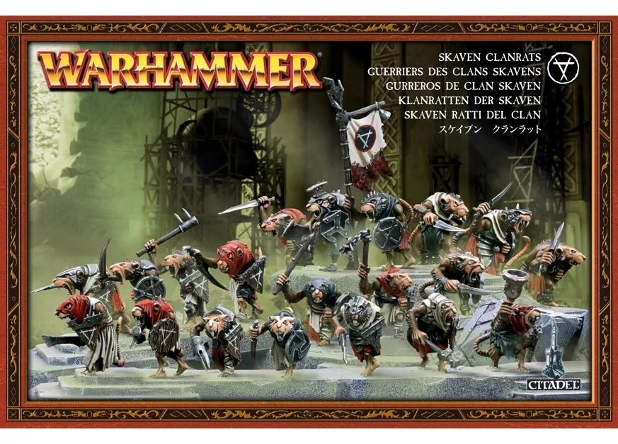 Клановые Крысы-Воины составляют основу любой армии Скейвенов. Сами по себе Клановые Крысы не такие уж исключительные бойцы – им не хватает дисциплины и решительности. Но в больших количествах они становятся страшными противниками. Присутствие других Скейвенов резко поднимает их боевой дух, наполняя их уверенностью и питая их знаменитую боевую ярость. В иерархической пирамиде Клановые Воины стоят у самой вершины, уступая только злобным черношёрстным Штормверминам и самому Варлорду.