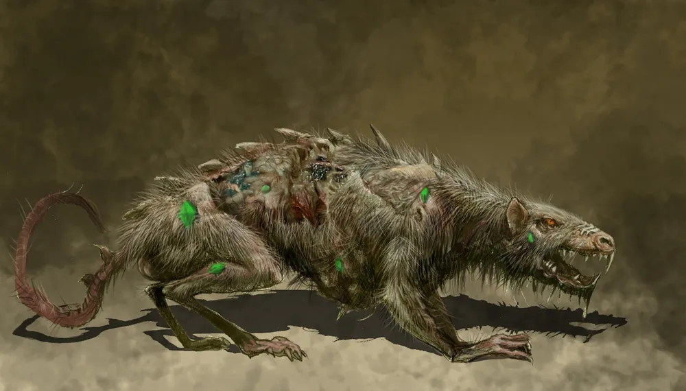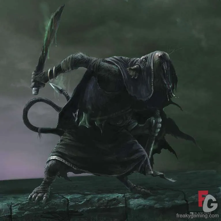 это самые большие и опасные крысы, известные человечеству. Иногда они достигают в размере 6 футов, имеют крепкие конечности и мощные челюсти. Клан Творцов некогда специально вырастил этих ужасных крыс-зверей до размера волков, сохранив их жестокость и непреодолимый голод. Относительно простые в разведении, эти звери самые дешевые из продаваемых Творцами другим кланам и поэтому они довольно широко распространены в армиях скейвенов. Бурлящая масса вонючего меха и острых клыков, эти создания могут сокрушить даже самых стойких врагов.