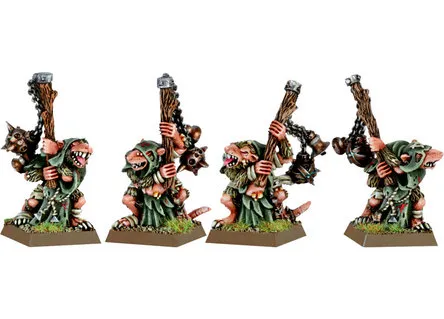 Наиболее тяжёлое и смертоносное пехотное оружие клана Скрайр переносится расчётами из двух Скейвенов. Рэтлинг-ганы – сравнительно недавнее пополнение в арсенале крысолюдов; поворотный блок стволов осыпает врага градом смертоносных пуль из варпстоуна, которые рвут в клочья плоть и прошивают насквозь самую прочную броню.