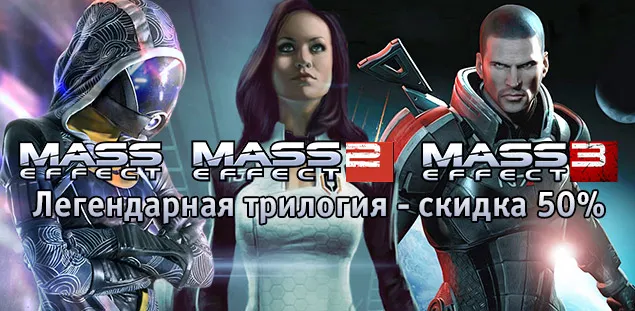 Друзья, сервис цифровой дистрибуции Гамазавр рад представить вашему вниманию новую акцию. На этот раз мы предлагаем вам всю серию Mass Effect со скидкой 50%.