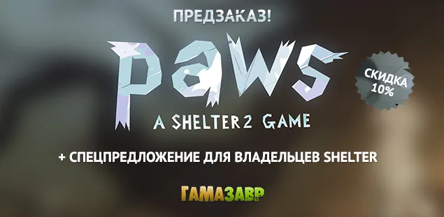 Если вы покупали у нас игру Shelter или Shelter 2, то вас ждёт сюрприз: [B]дополнительная скидка 10%[/B] к уже действующей на игру Paws! Купон на скидку вы можете найти в своём Личном кабинете.