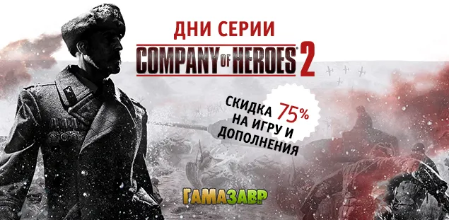 С 15 по 18 марта включительно у нас проходят дни игры Company of Heroes 2. Не пропустите распродажу, во время которой вы сможете приобрести эту отличную стратегию и дополнения для неё со скидкой 75%!