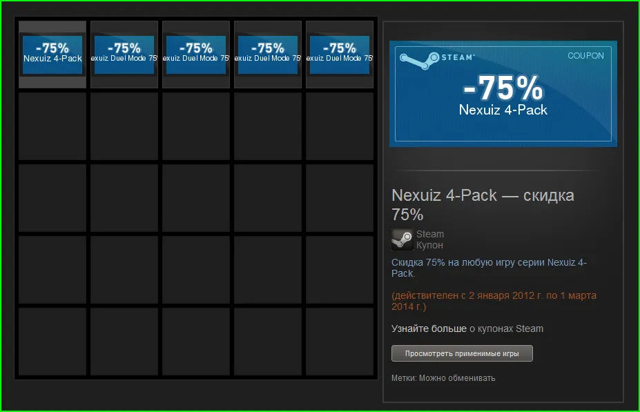 Купоны действителен с 2 января 2012 г. по 1 марта 2014 г.