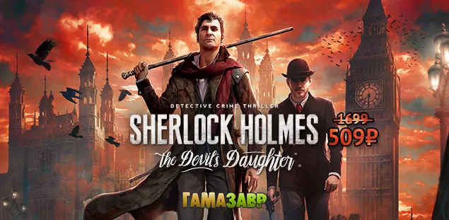 Игра Sherlock Holmes and The Devil's Daughter подешевела в ТРИ раза! Акция продлится до 12 июля включительно. Играйте за великого сыщика, распутайте клубок интриг, выследите зло в самых темных уголках Лондона и человеческой души и сделайте шокирующее разоблачение.