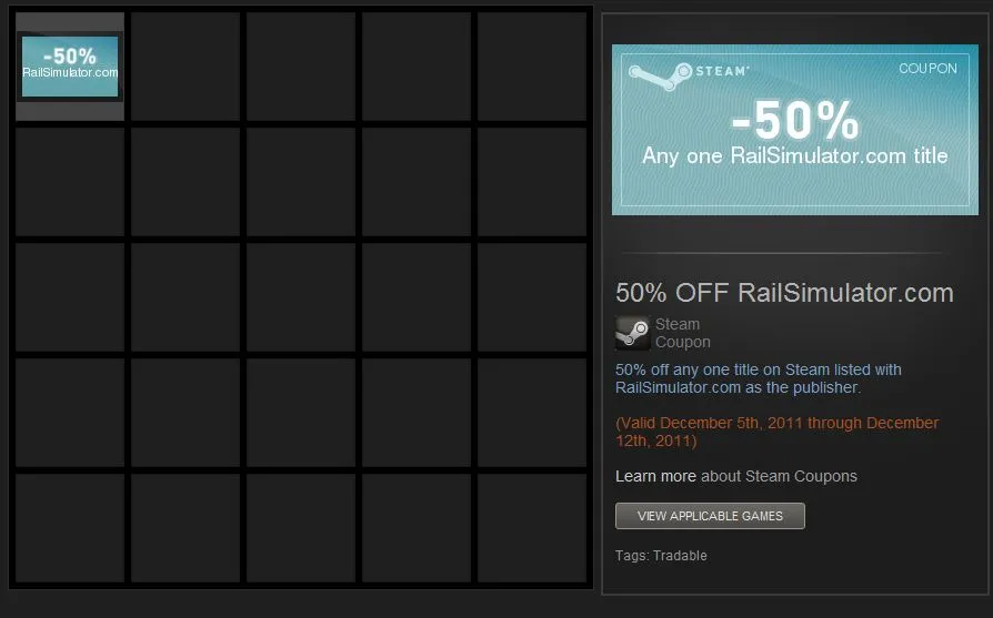 Купоны в инвентаре будут иметь кнопку "Посмотреть применимые игры". После этого вы увидите страницу с доступными продуктами, к которым можно применить купон.