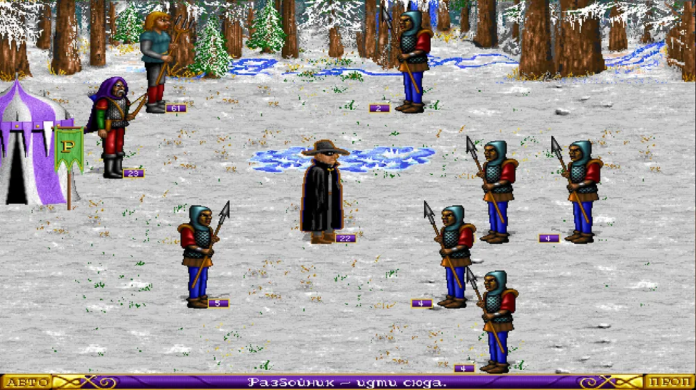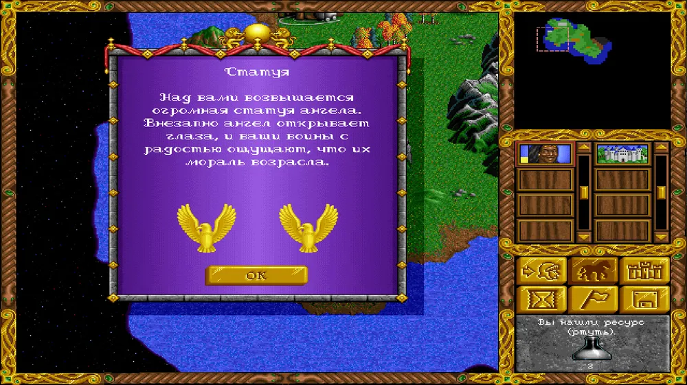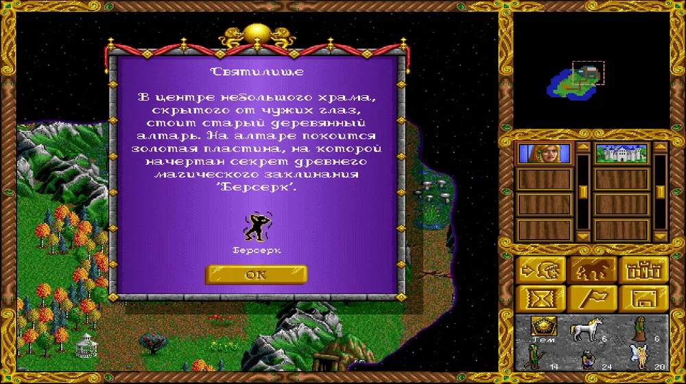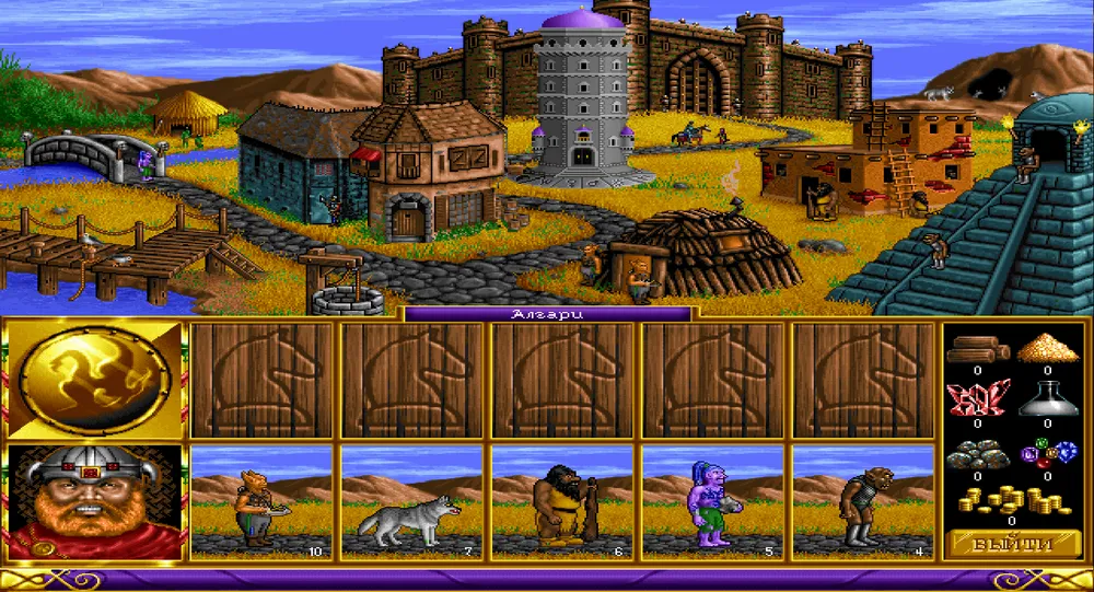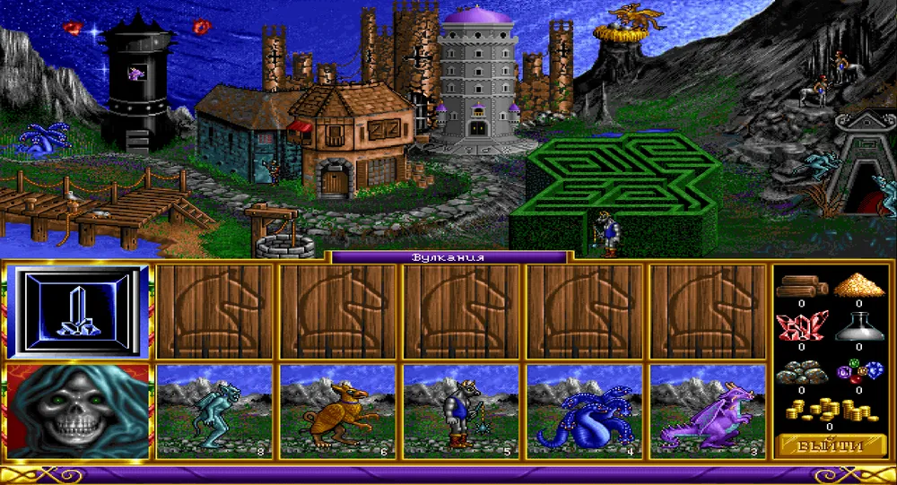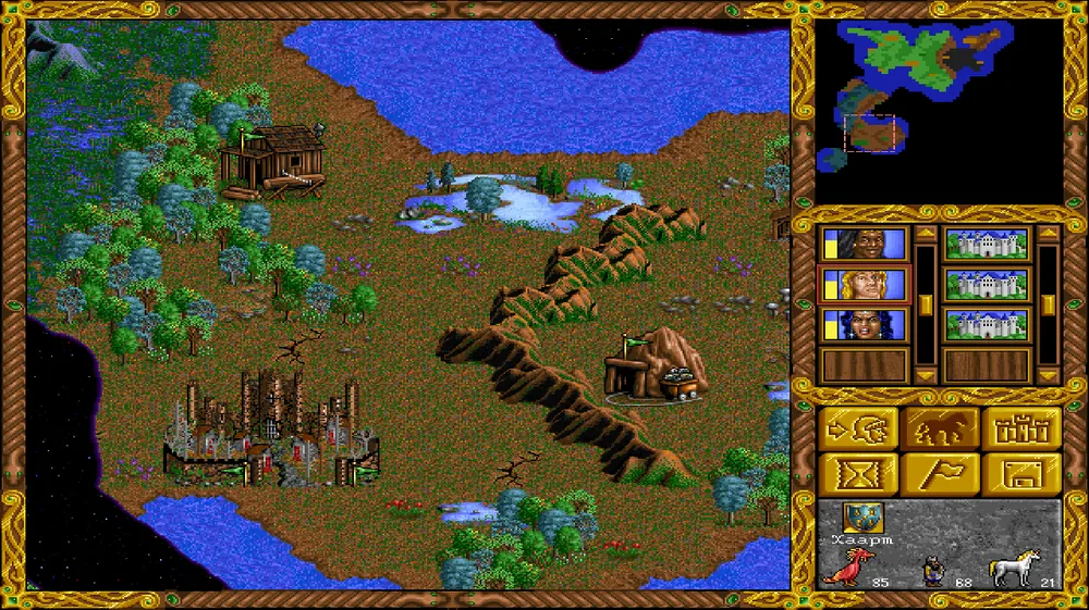 На стратегической карте мы будем перемещать наших рыцарей на конях, то есть героев. К слову, не все они рыцари на белых конях, есть и чародеи и принцессы и ведьмы. У каждого такого героя есть собственные характеристики, портрет и биография. Здесь и раскрываются ролевые элементы игры. Мы будем развивать героев по ходу игры.
