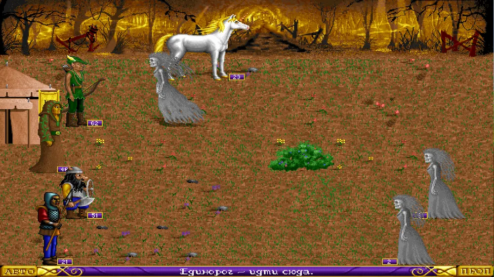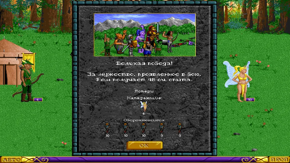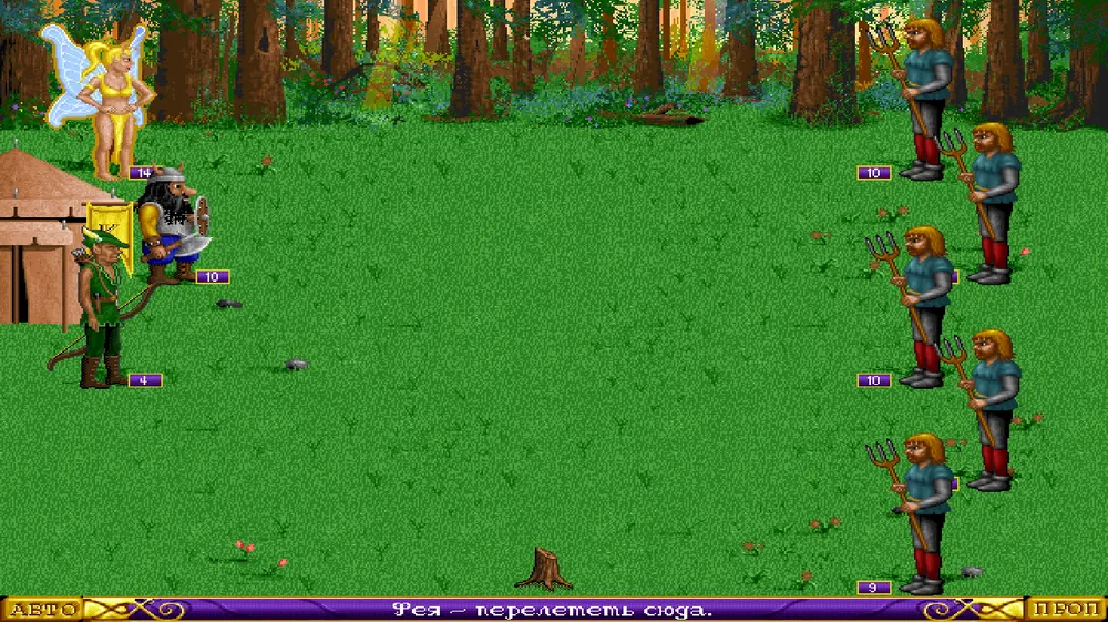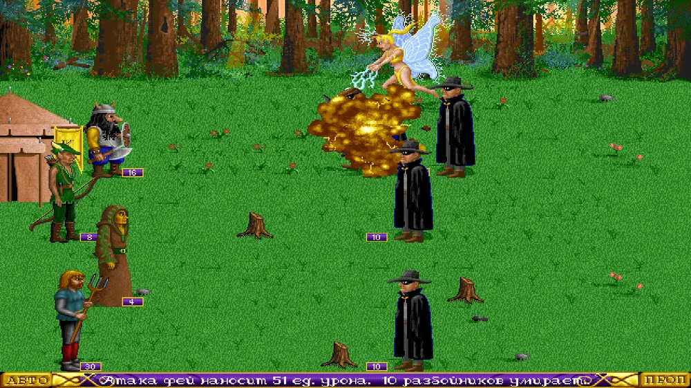Сражения в игре тоже красиво сделаны. Перед нами целое поле боя! Где в походовом режиме мы перемещаем юнитов. Сами герои в первой части в боях непосредственно не участвуют. Но герои могут применять магию. И добавлять бонусы к отрядам. Герои получаются ― предводителями и полководцами, уникальными личностями на поле боя. А их разнообразные портреты, наборы характеристик и навыков только помогают проникнуться этим ощущением. Все юниты хорошо анимированы для своего времени. Так лучники стреляют из луков, друиды стреляют огненными шарами, феи атакуют волшебством и сверкают маленькими молниями. И такой уникальной анимации для юнитов много! Сами ландшафты, на которых мы сражаемся, очень разнообразны. Это леса, болота, пустыни.