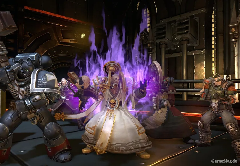 Итак, нас ждет около 5-ти классов за империум (сужу по первому скрину). Сразу виден космодесантник, В центре инквизитор или псайкер, слева от него член Адептус механикус (он же на последнем скрине). Остаются двое. Крайний левый, скорее всего скаут, о котором говорилось в интервью (http://www.gamer.ru/games/2970-warhammer-40-000-dark-millenium-online/posts/50344 Смотри пункт 2), А вот про последнего ничего не могу сказать. Может знатоки помогут?