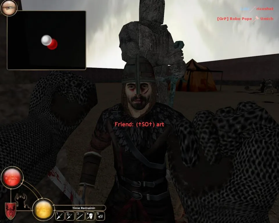 - В игре конечно же есть крепости, которые надо захватывать, либо флаги которые надо украсть а так-же подобие DM - чья сторона больше убьет те и победили.
