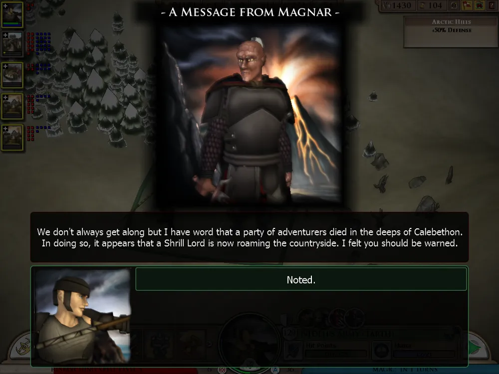 А вот к слову и предупреждение компьютерного игрока о появлении сильных монстров: