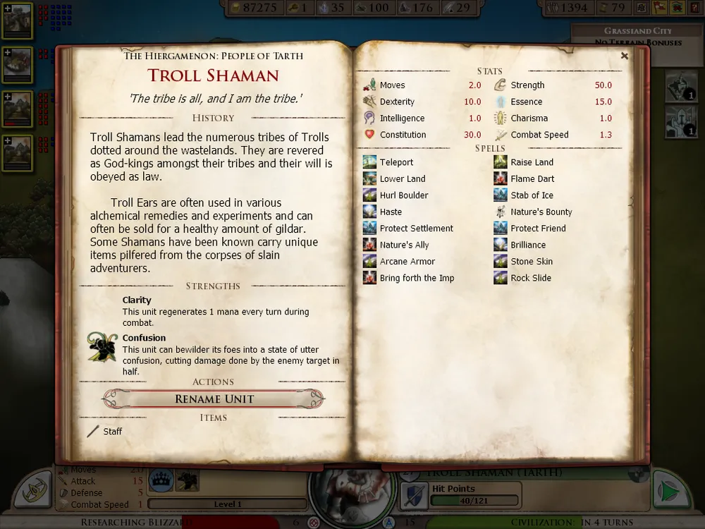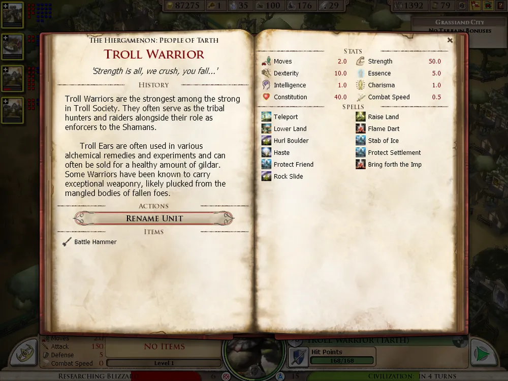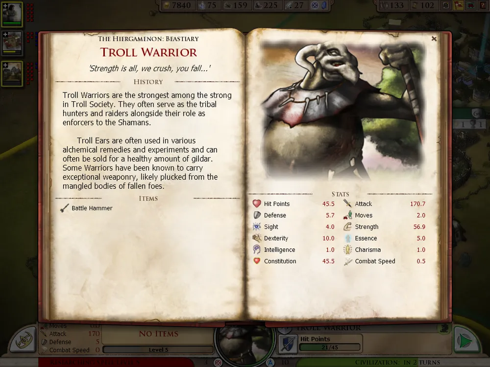 Ну и в качестве бонуса скрины описания с картинками (только учтите, что подарочные монстры первого уровня, а приведённые ниже скорее всего далеко не первого): тролля воина, пары shrill и монстров которых можете повстречать на своём пути (правда и подарочных монстров в стане нейтралов тоже наверняка увидите, с развитием цивилизации они на карте появляются всё чаще, при чём некоторые компьютерные игроки вас об этом даже предупреждают).