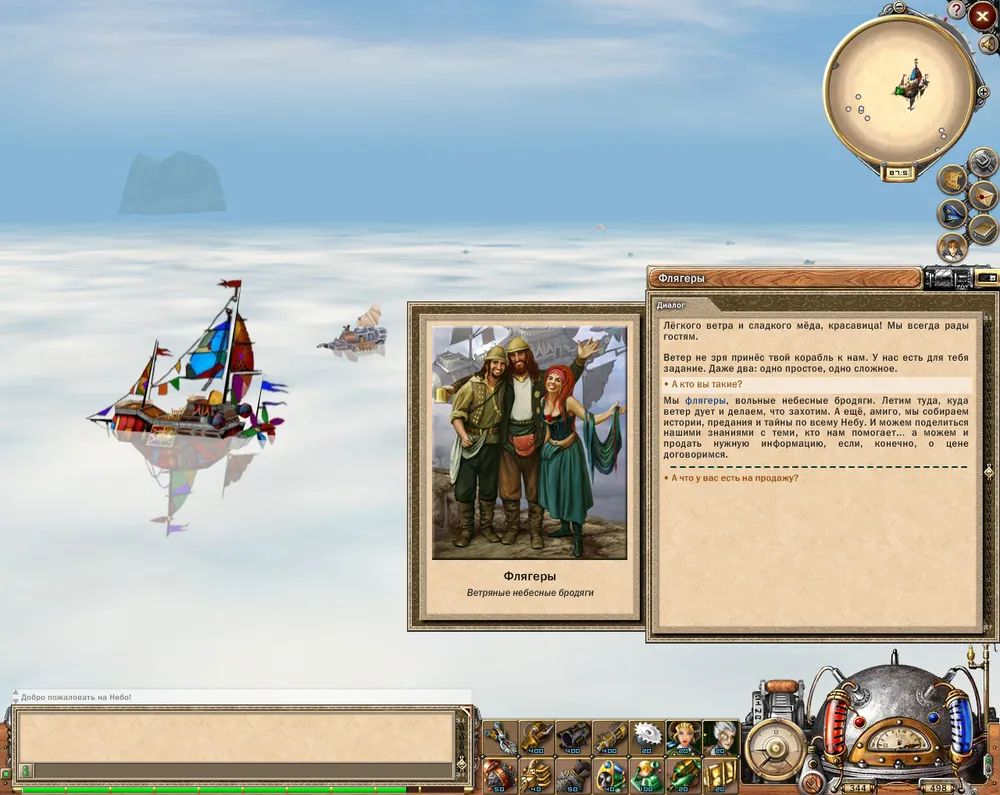 Пользователю предлагается путешествие по бескрайним просторам Неба – мира летающих островов. Огромные одуванчики здесь соседствуют с кровожадными пиратами, а многогранное развитие персонажа дает возможность как в одиночку, так и с друзьями исследовать и покорять опасные Лабиринты Облаков.