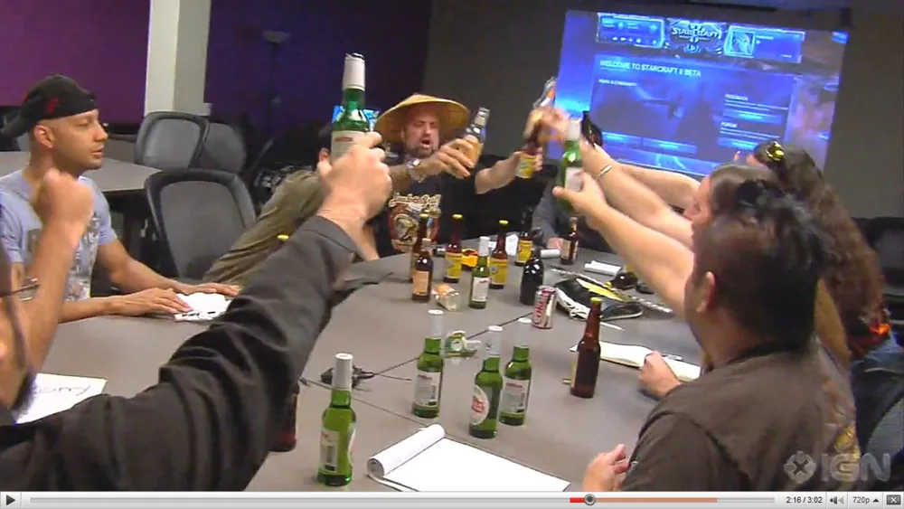 Дастин Броудер (ведущий дизайнер SC2) с коллегам празднуют.. приблизим: