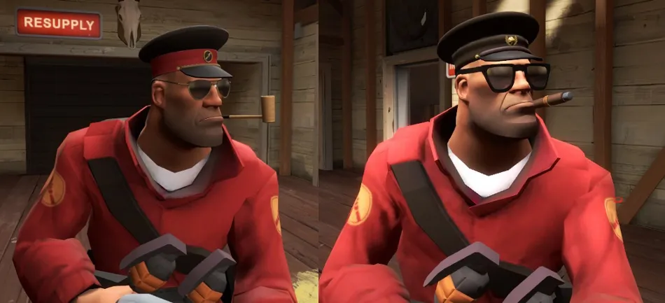 Хоть этот стиль и оправдывает название, но старые глаза (которые между прочем имеют Jigglebones) гораздо веселее, еще к минусу можно отнести то что для снайперов теперь вы легкая мишень с такой-то меткой на голове.