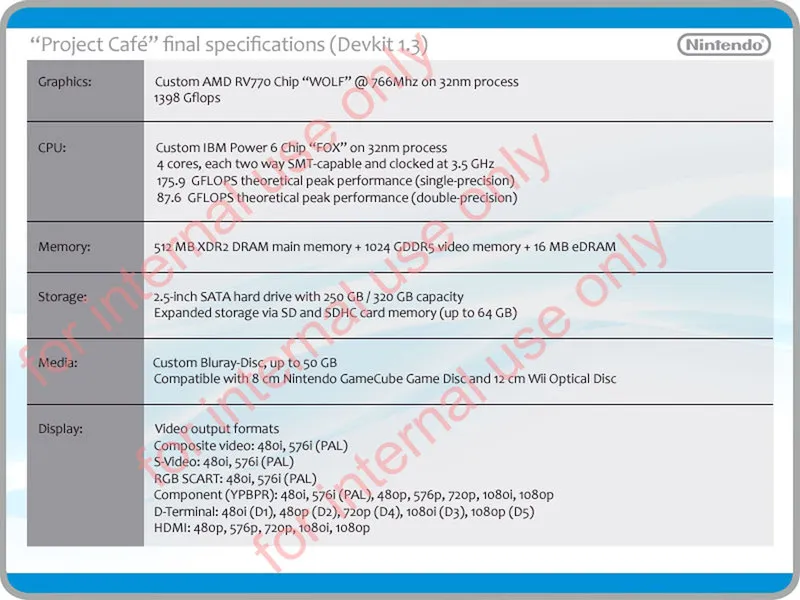 Некий nikodemis, представившийся сотрудником студий Nindendo, взбудоражил форум IGN.com скриншотом со спецификациями девкита 1.3 консоли Nindendo под кодовым названием Project Cafe.