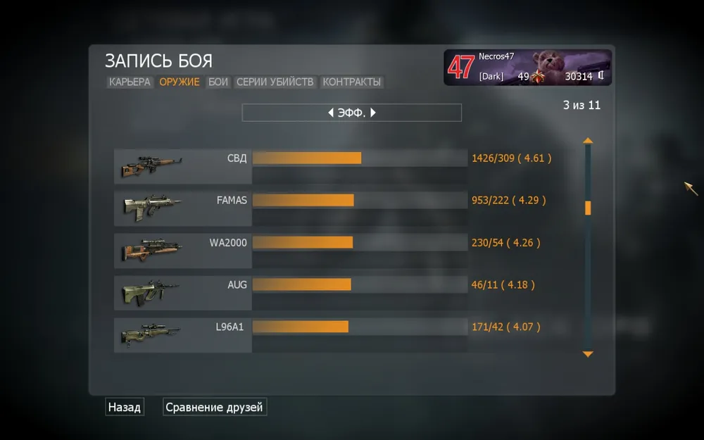 Самая точная снайперская винтовка в игре, идеально подходит для дуэлей со снайперами, обладает чуть повышенным уроном в нижнюю часть туловища, чем СВД и WA2000, Полуавтоматический режим ведения огня.