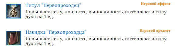 Теперь пару слов о титуле и плаще. Они тоже не простые, а весьма неплохие вещи на первые двадцать уровней игры. Ведь эти вещи дают прибавку к статам.